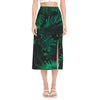 Wolf Howling At The Full Moon Print Side Slit Midi Skirt