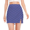 Blue And White Polka Dot Pattern Print Side Slit Mini Skirt