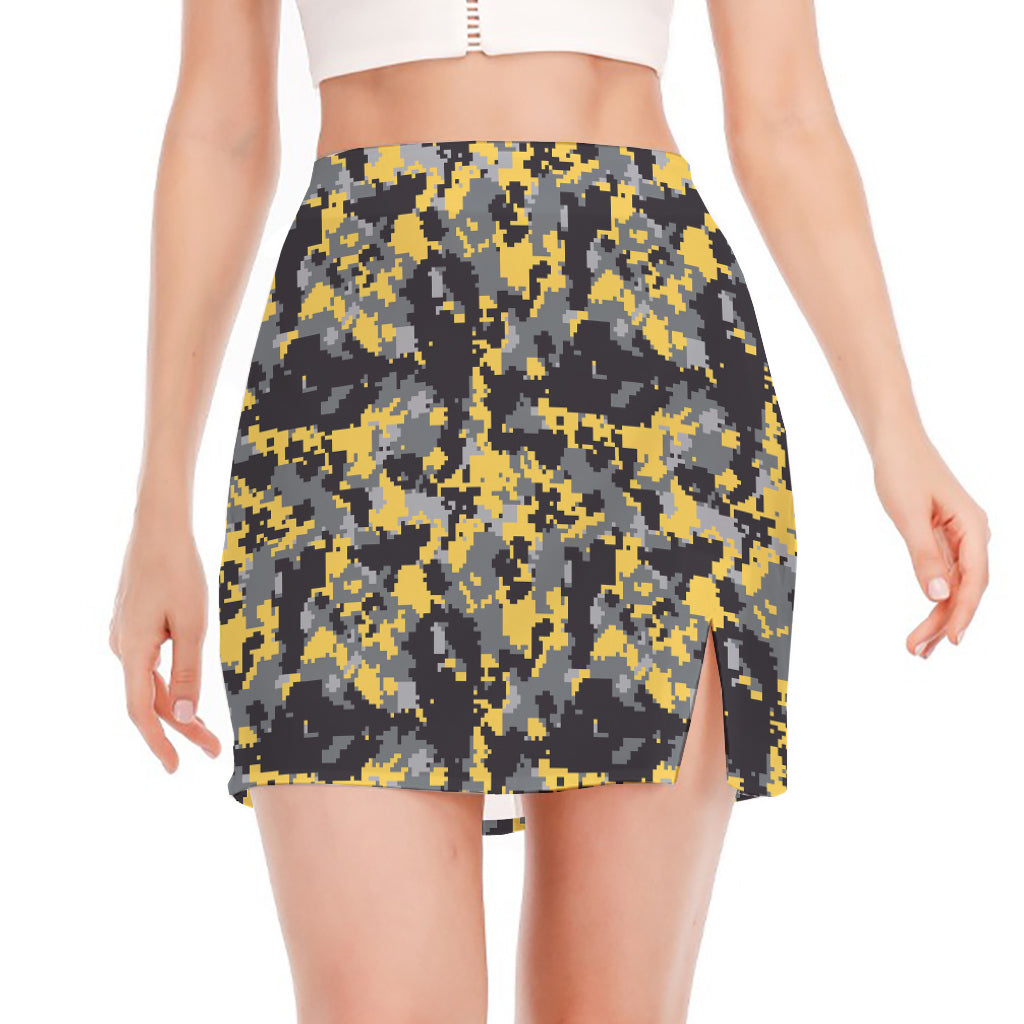 Grey Alien Face Pattern Print Side Slit Mini Skirt