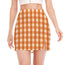 Orange And White Checkered Pattern Print Side Slit Mini Skirt