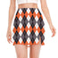 Orange And White Checkered Pattern Print Side Slit Mini Skirt