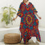 Red And White African Dashiki Print Silk V-Neck Kaftan Dress