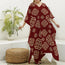 Red And White African Dashiki Print Silk V-Neck Kaftan Dress