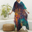 Tentacles Of Octopus Print Silk V-Neck Kaftan Dress