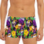 Stay supported and comfortable with the Purple Tropical Skull Pattern Print Men's Short Boxer Briefs. Made with 95% polyester and 5% spandex, these short boxer briefs provide a snug, close fit while maintaining flexibility. The elastic waist ensures they stay in place, making them a reliable choice for everyday wear.