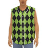 Black And Green Argyle Pattern Print Sleeveless Baseball Jersey