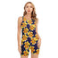 Tropical Leaf And Hawaiian Flower Print Sleeveless One Piece Swimsuit