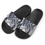 Knitted Style Reggae Pattern Print Black Slide Sandals
