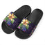 Black Sunflower Pattern Print Black Slide Sandals