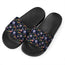 Black Sunflower Pattern Print Black Slide Sandals