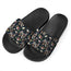 Black Sunflower Pattern Print Black Slide Sandals