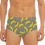 Stay confident at the pool or beach with the Black Striped Banana Pattern Print Men's Triangle Swim Briefs. Designed with a blend of 88% polyester and 12% spandex, these swim briefs provide comfort, stretch, and support for everyday swimwear use. The smooth fabric and regular fit make them practical for both swimming and lounging.