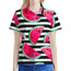 Stay stylish and comfortable with the versatile Black Striped Watermelon Pattern Print Women's Polo Shirt. This women's polo shirt is designed to offer the perfect balance of classic style and everyday practicality, making it an essential addition to your wardrobe. Whether you’re heading to the office, enjoying a casual outing, or staying active, this polo shirt has you covered in both comfort and style.