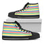 Are you looking for unique sneakers? Check our Colorful Striped Pattern Print Black High Top Sneakers on GearFrost. Our sneakers are handcrafted to the highest quality standards and made-to-order for you!