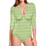 Are you looking for unique swimsuits? Check our Green And White Striped Pattern Print Long Sleeve Swimsuit on GearFrost. Our swimsuits are handcrafted to the highest quality standards and made-to-order for you!
