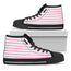Are you looking for unique sneakers? Check our Pink And White Striped Pattern Print Black High Top Sneakers on GearFrost. Our sneakers are handcrafted to the highest quality standards and made-to-order for you!