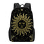 Carry your essentials in style and comfort with the versatile Black And Gold Celestial Sun Print 17 Inch Backpack. This 17-inch backpack is the perfect companion for busy days, offering a blend of practicality and fashionable design. Whether you’re heading to school, work, or a weekend adventure, this backpack is built to meet your storage and comfort needs while adding a touch of flair to your look.