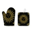 The Black And Gold Celestial Sun Print Oven Mitt And Pot Holder Set is a reliable kitchen essential designed to keep your hands and surfaces safe during everyday cooking. Made from durable polyester with an insulation cotton lining, this set offers comfort and practical heat resistance for common kitchen tasks.
