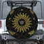 USE THE TIRE COVER SIZE CALCULATORAre you looking for unique tire covers? Check our Black And Gold Celestial Sun Print Tire Cover With Camera Hole on GearFrost. Our tire covers are handcrafted to the highest quality standards and made-to-order for you!