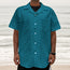 Black Palm Leaf Aloha Pattern Print Textured Short Sleeve Shirt