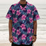 Colorful Tulip Pattern Print Textured Short Sleeve Shirt