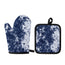 Blue And White Acid Wash Tie Dye Print Oven Mitt And Pot Holder Set