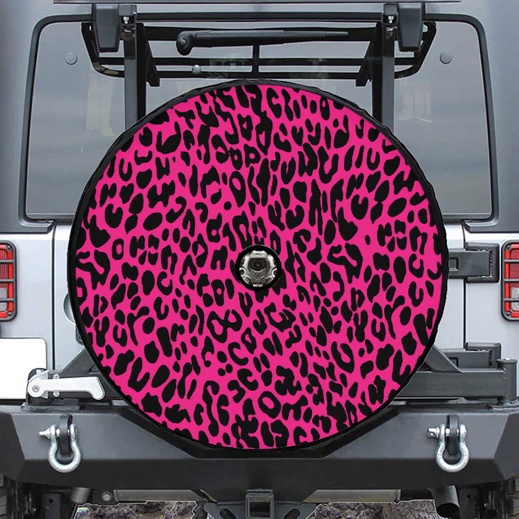 Hot Pink Leopard Print Tire Cover With Camera Hole