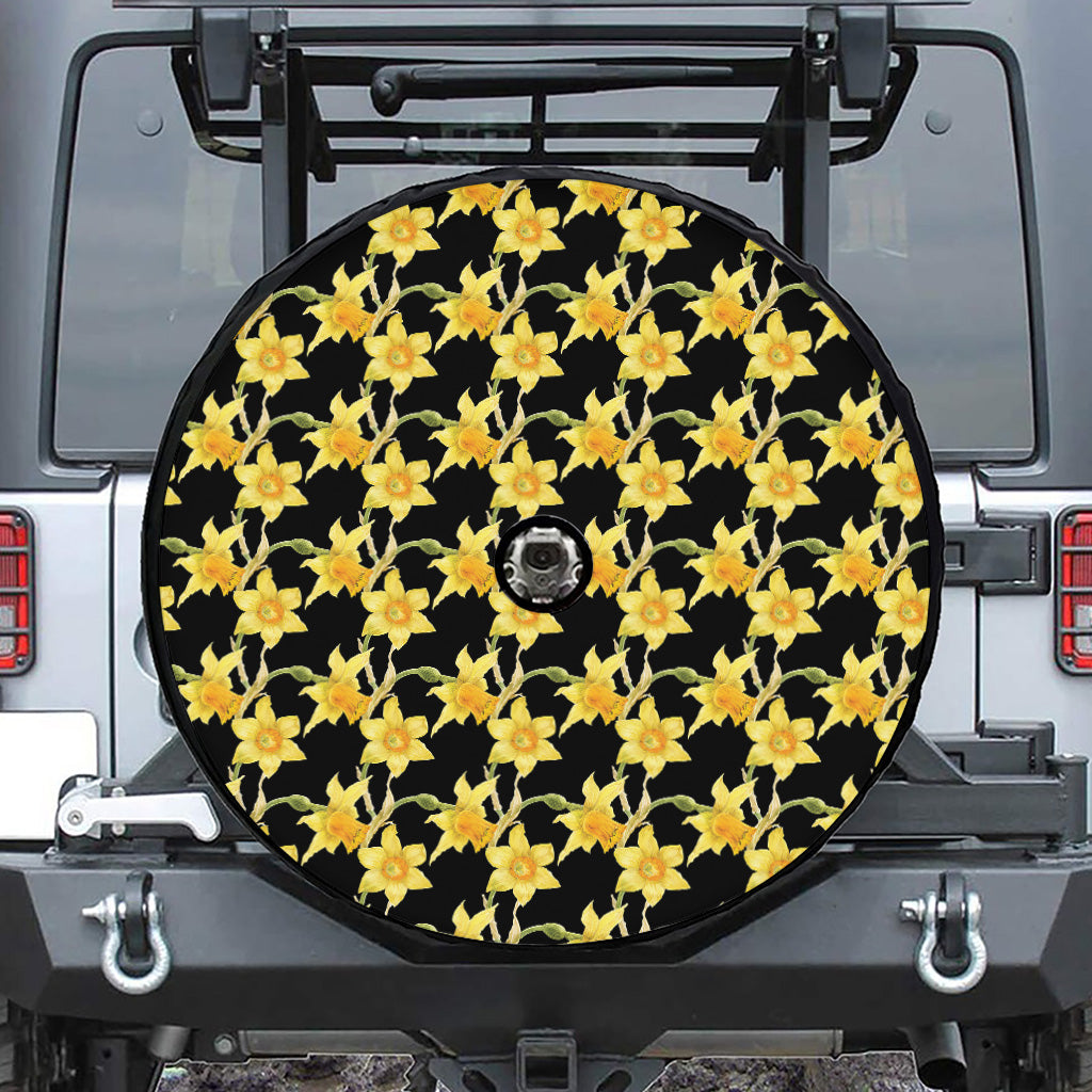 Black And Grey Camouflage Print Tire Cover With Camera Hole