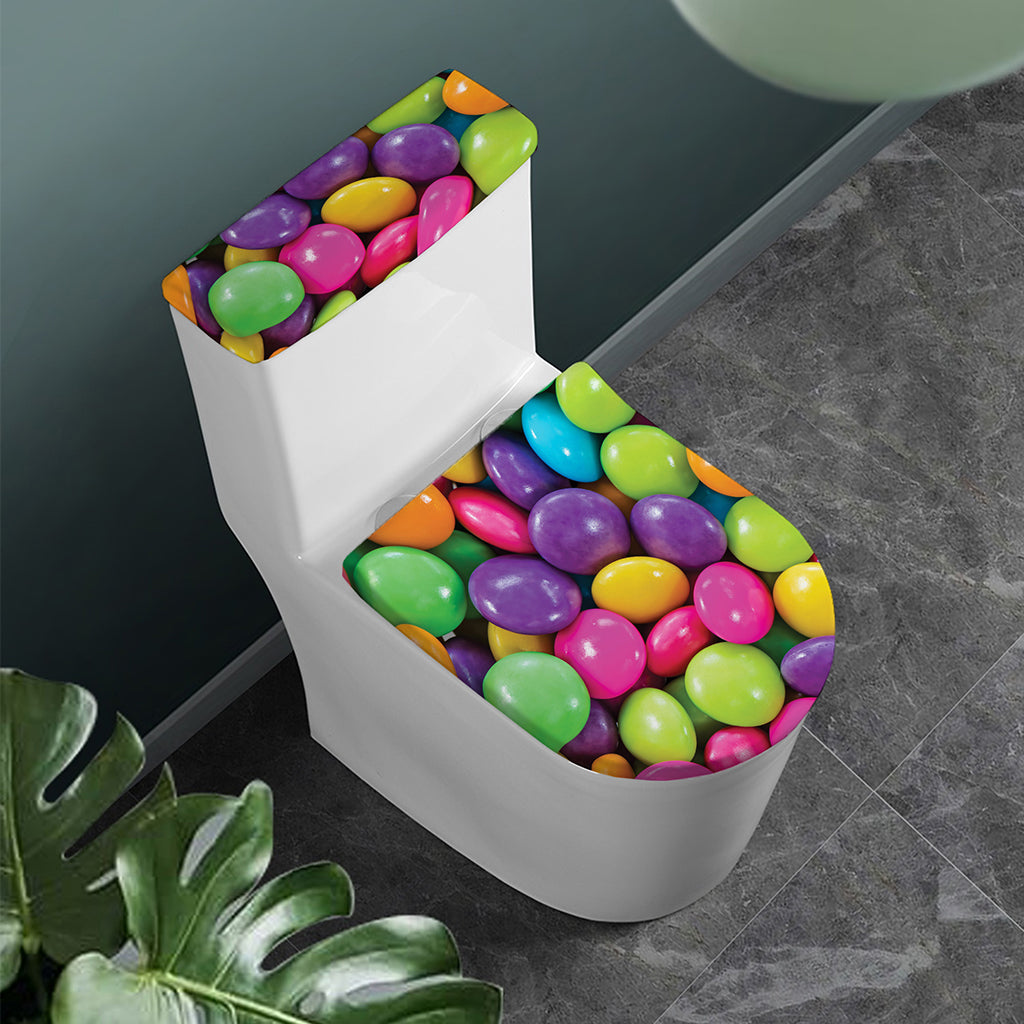 Colorful Chocolate Candy Print Toilet Lid And Tank Cover Set