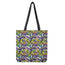 - Each tote features a double-sided print and is finished with a set of straps for over-the-shoulder carrying.