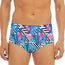 Stay confident at the pool or beach with the Blue Tropical And Pink Flamingo Print Men's Triangle Swim Briefs. Designed with a blend of 88% polyester and 12% spandex, these swim briefs provide comfort, stretch, and support for everyday swimwear use. The smooth fabric and regular fit make them practical for both swimming and lounging.