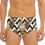 Stay confident at the pool or beach with the Gold Tropical Skull Pattern Print Men's Triangle Swim Briefs. Designed with a blend of 88% polyester and 12% spandex, these swim briefs provide comfort, stretch, and support for everyday swimwear use. The smooth fabric and regular fit make them practical for both swimming and lounging.