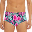 Stay confident at the pool or beach with the Pink Hibiscus Tropical Pattern Print Men's Triangle Swim Briefs. Designed with a blend of 88% polyester and 12% spandex, these swim briefs provide comfort, stretch, and support for everyday swimwear use. The smooth fabric and regular fit make them practical for both swimming and lounging.