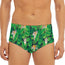 Stay confident at the pool or beach with the Tropical Tiger Pattern Print Men's Triangle Swim Briefs. Designed with a blend of 88% polyester and 12% spandex, these swim briefs provide comfort, stretch, and support for everyday swimwear use. The smooth fabric and regular fit make them practical for both swimming and lounging.