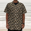 Black And Grey Western Floral Print Men's Short Sleeve Shirt