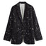 The button closure and side pockets add both style and practicality, providing secure storage for small essentials like keys or a phone. Whether you’re in a professional setting or enjoying a night out, these features make the blazer as functional as it is fashionable. The stitching, available in black or white, is thoughtfully matched to the design, ensuring a polished and cohesive look.