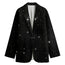 The button closure and side pockets add both style and practicality, providing secure storage for small essentials like keys or a phone. Whether you’re in a professional setting or enjoying a night out, these features make the blazer as functional as it is fashionable. The stitching, available in black or white, is thoughtfully matched to the design, ensuring a polished and cohesive look.