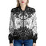 Black White Rose Floral Pattern Print Women's Bomber Jacket