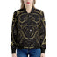 Make a bold statement with the sleek and stylish Gold And Black Cancer Sign Print Women's Bomber Jacket. This women's bomber jacket combines a classic silhouette with modern design, offering the perfect mix of fashion and functionality. Whether you're layering it for a chilly day or adding a finishing touch to your outfit, this jacket is designed to keep you comfortable while elevating your style.