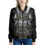 Black White Rose Floral Pattern Print Women's Bomber Jacket