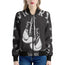 Black White Rose Floral Pattern Print Women's Bomber Jacket