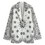 Functionality meets fashion with two spacious side pockets, ideal for carrying small essentials like your phone, keys, or wallet. The blazer is finished with stitching in black or white, automatically matched to suit the design for a seamless appearance. This attention to detail enhances its overall elegance, making it a standout piece for any occasion.