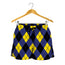 Stay stylish and comfortable with the versatile Blue Black And Yellow Argyle Print Women's Shorts. These women’s shorts are designed to provide the perfect blend of practicality and flair, making them an essential piece for your active and casual wardrobe. Whether you’re heading to the gym, enjoying a morning run, or relaxing by the water, these shorts are crafted to keep you looking and feeling your best.