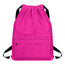 Made from durable polyester, the fabric feels comfortable to the touch and resists fading over time. The drawstring opening makes it easy to access your belongings quickly, while the spacious interior and handy front zipper pocket help keep items like water bottles, clothes, towels, books, and accessories neatly arranged. Reinforced corners add extra strength, giving this bag better durability compared to ordinary drawstring bags. Built with standard quality materials, it provides dependable functionality without unnecessary extras, and it folds flat when not in use for easy storage.