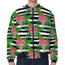 Green Striped Watermelon Pattern Print Zip Sleeve Bomber Jacket
