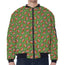 Green Striped Watermelon Pattern Print Zip Sleeve Bomber Jacket