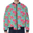 Green Striped Watermelon Pattern Print Zip Sleeve Bomber Jacket