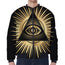 Elevate your outerwear game with the sleek and practical Black And Gold Eye of Providence Print Zip Sleeve Bomber Jacket. Combining a modern aesthetic with everyday functionality, this zip sleeve bomber jacket is perfect for anyone looking to stay stylish while keeping warm. Whether you’re heading out for a casual day, traveling, or engaging in outdoor activities, this jacket is designed to be your go-to choice for any occasion.