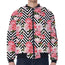 White Red And Beige Argyle Pattern Print Zip Sleeve Bomber Jacket