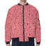 White Red And Beige Argyle Pattern Print Zip Sleeve Bomber Jacket